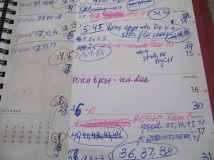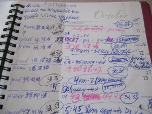 All those numbers in different colors? Totally unrealistic estimates of the chapters I should be revising. (That’s why there are so many of them.) 🙂